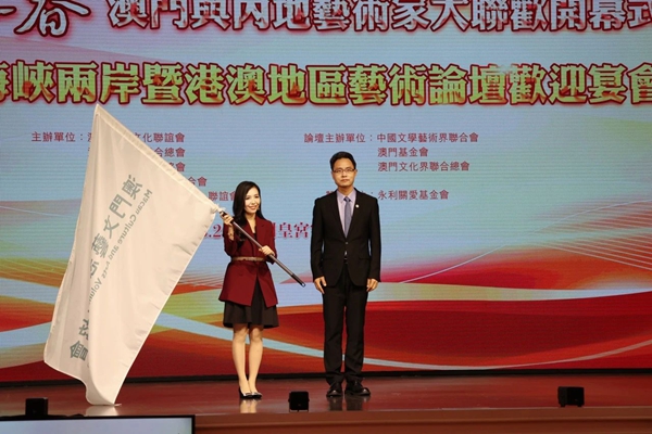 冀彥偉代表中國文藝志愿者協會向澳門文藝志愿者協會授旗