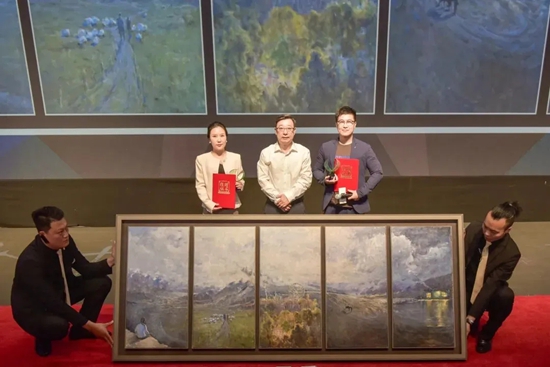 鄧光輝在首映禮現場,接受由北京靳尚誼藝術基金會青年畫家傅察丹青為電影創作并捐贈的五幅影片主題油畫。由五幅油畫拼合而成的電影官方海報也在首映禮上發布。