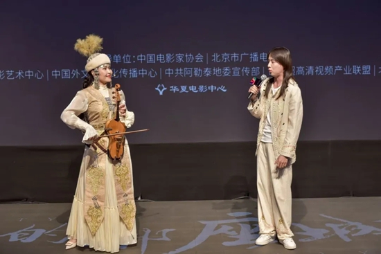 在阿勒泰非遺文化推介環節,95后青年呼麥傳承人哈拉木吉與阿勒泰地區非物質文化女聲“呼麥”唱法傳承人阿爾生·巴哈提,青年舞蹈家李響與中央民族歌舞團舞者葉爾麥克,影片阿勒泰籍演員代表阿來·阿依達爾汗與知名演員吳軍分別就阿勒泰地區非遺文化呼麥、哈薩克族傳統舞蹈“黑走馬”以及北疆最美公路“阿禾公路”、阿勒泰特色美食進行精彩推介。由中國外文局文化傳播中心邀請的來自埃及、斯里蘭卡、馬來西亞、約旦、肯尼亞等國的6名青年網絡達人、留學生代表現場學習呼麥和舞蹈、品嘗美食,與中國藝術家互動交流。