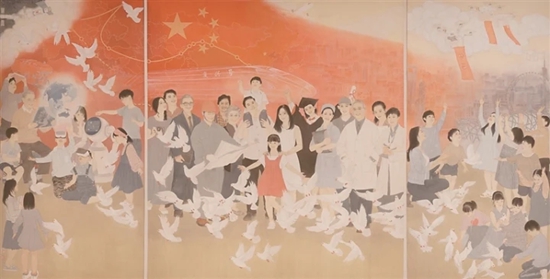 八十載歲月滄桑,銘記著中華民族從深重危難走向偉大崛起的歷史轉折。中國共產黨團結帶領全國各族人民,發奮圖強、艱苦創業,創造了無數奇跡。我們在堅定維護世界和平與發展中謀求自身發展,積極推動構建人類命運共同體,讓和平的薪火代代相傳,讓發展的動力源源不斷,讓文明的光芒熠熠生輝。一批當代美術作品以多元藝術形式,展現了偉大抗戰精神穿越時空的磅礴力量以及中國人民對和平的期盼和暢想。